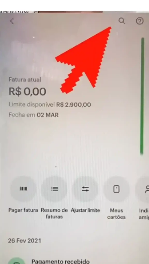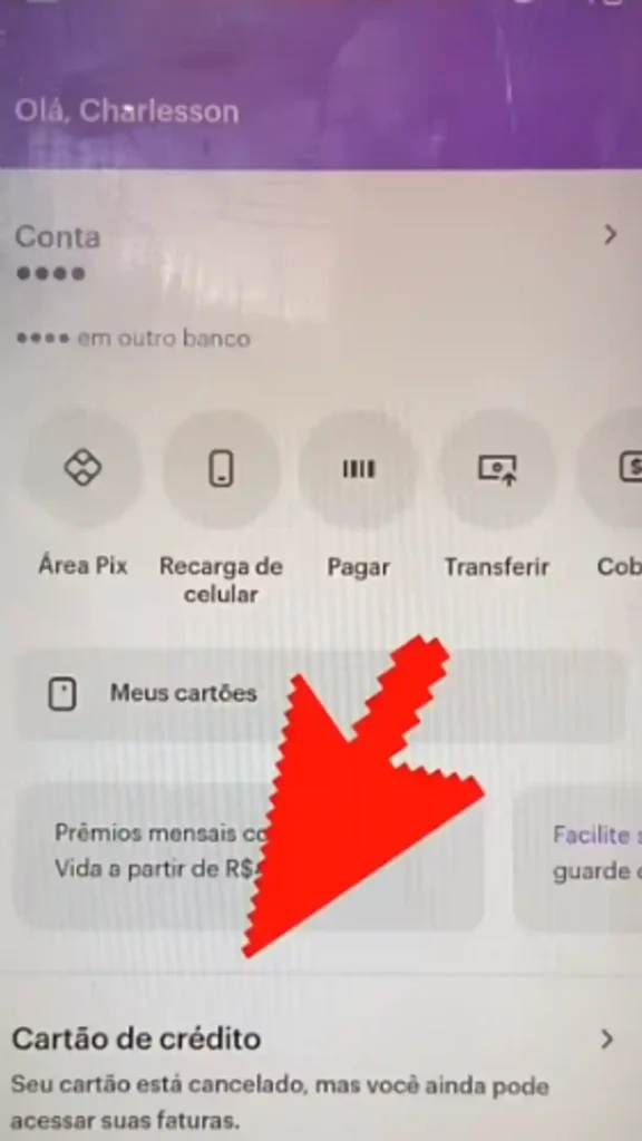 Abra o aplicativo do Nubank no seu celular e clique na área de cartão de crédito